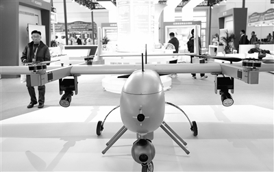 图为参展商展示的执法无人机。本报记者 洪星摄