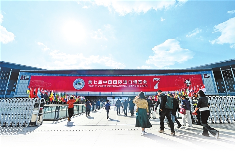 第七届进博会于11月5日至11月10日在上海举办,吸引众多参观者前来(11月6日摄)。河南日报社全媒体记者 马腾飞 摄