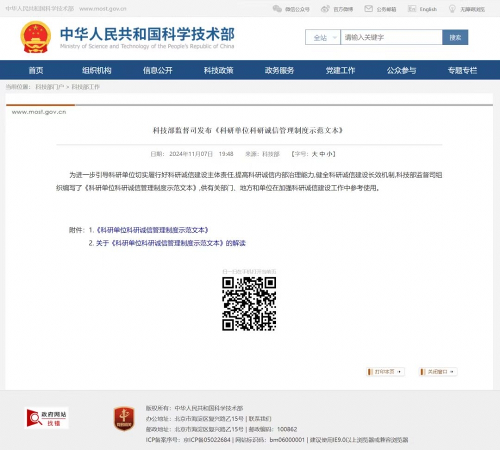 为进一步引导科研单位切实履行好科研诚信建设主体责任,提高科研诚信内部治理能力,健全科研诚信建设长效机制,科技部监督司组织编写了《科研单位科研诚信管理制度示范文本》,供有关部门、地方和单位在加强科研诚信建设工作中参考使用。