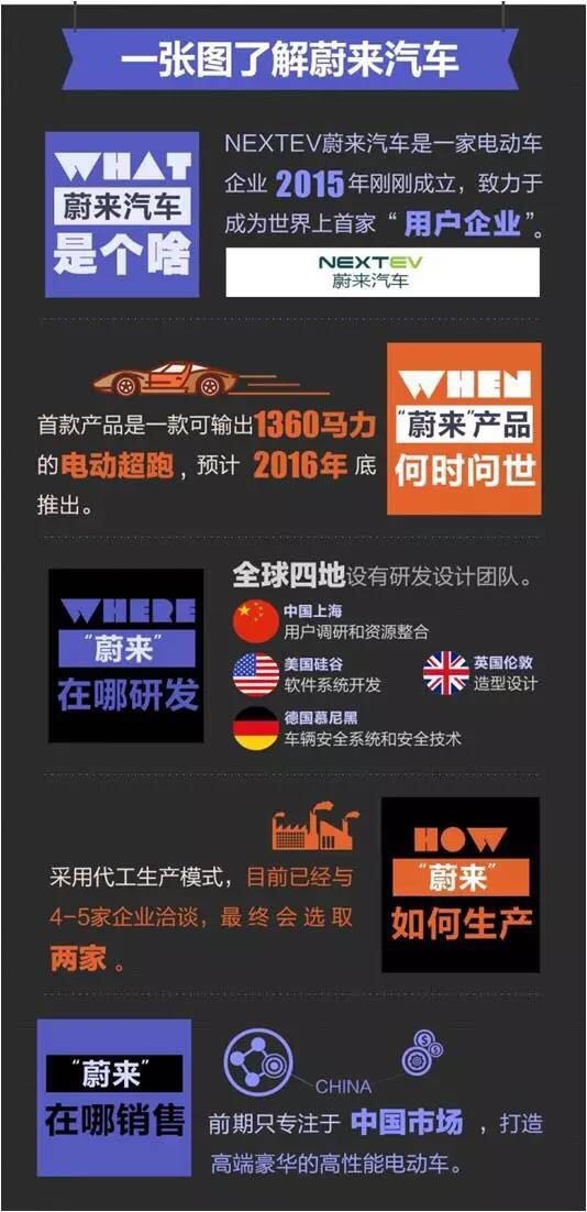 今日,国内一家名为“NextEV”蔚来汽车的新兴电动车公司对外宣布已经获得了包括腾讯、高瓴资本(Hillhouse Capital)、京东商城在内的多家重量级投资机构的投资,而这笔资金将全部用于“智能电动车”造车计划。在这笔投资中,腾讯是最大股东。根据公开资料显示,易车李斌和前汽车之家CEO 李想此前曾投资过此公司。
