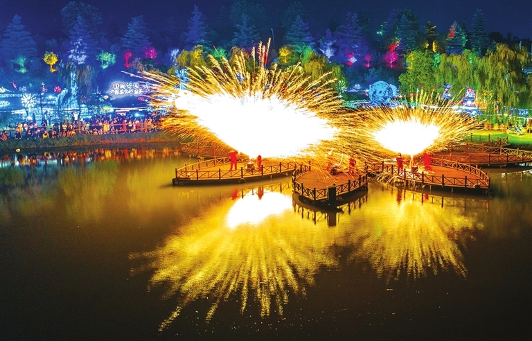 南阳镇平非遗打铁花表演。图片均为资料图片