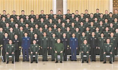 124日,中共中央总书记、国家主席、中央军委主席习近平到北部战区机关视察慰问,通过视频看望基层官兵,检查部队战备值班和执行任务情况,代表党中央和中央军委,向全体人民解放军指战员、武警部队官兵、军队文职人员、预备役人员和民兵致以诚挚问候和新春祝福。这是习近平同北部战区官兵代表合影留念。新华社记者 李刚摄