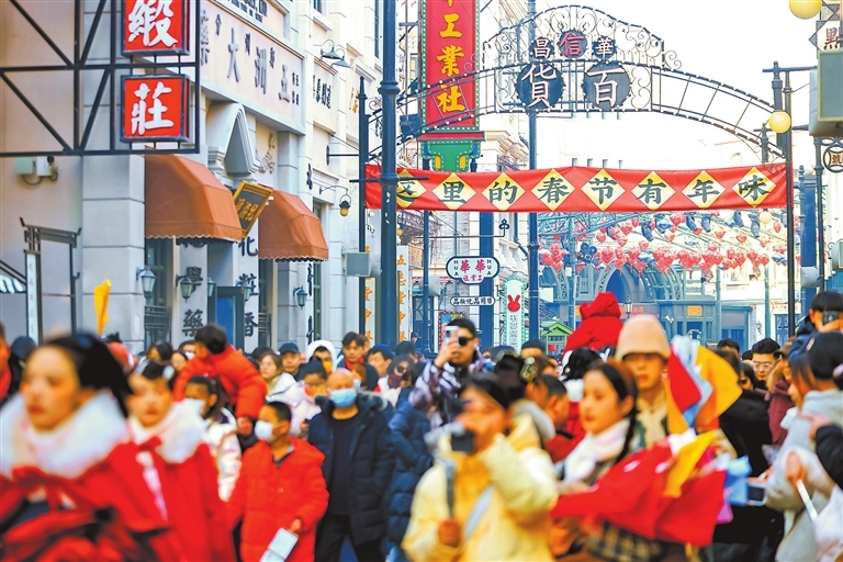 开年以来,我省多地特色商业街区以丰富的活动推动商文旅融合,为消费者提供更多元的消费体验。图为1月30日,郑州电影小镇举办的特色市集活动,吸引来众多游客。河南日报资料图片 记者 聂冬晗 摄