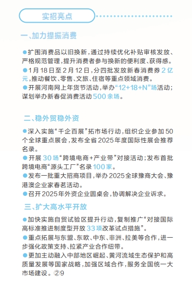 具体而言,省商务厅将围绕“更大力度提振消费扩内需、奋力扩大高水平开放”两大重点任务,通过持续优化以旧换新补贴审核发放、支持郑州对标创建国际消费中心城市等,以真招实措惠民生提振消费;通过抓好经营主体、重点市场、重点商品,谋划重点项目等,千方百计稳外贸稳外资;通过高标准对接RCEP规则,稳步扩大制度型开放等,持续推动商务高质量发展,为奋力谱写中国式现代化河南篇章作出新的更大贡献。