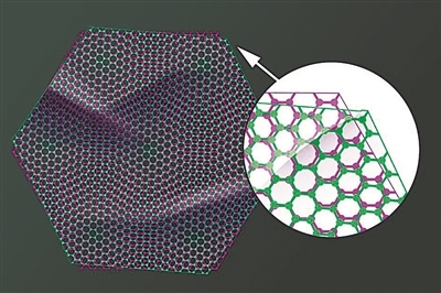 图中两片石墨烯以略微偏移的“魔角”堆叠在一起,既可以成为绝缘体,也可以成为超导体。