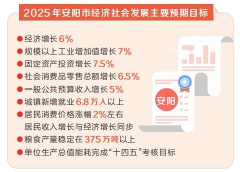 2024年,安阳市干字当头,超常发力,稳住了经济运行基本盘,跑出了转型升级加速度,树起了中华文化新地标,现代化区域中心强市建设打开新局面。全年生产总值2672亿元、增长4.6%;规模以上工业增加值增长5%;固定资产投资增长8%;工业投资增长19.4%;一般公共预算收入240.6亿元、增长2.1%;居民人均可支配收入增长4.8%。