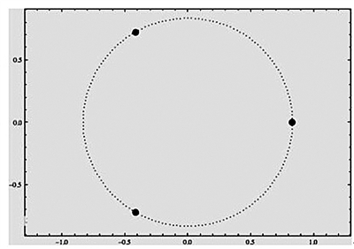 拉格朗日—欧拉族——三星成三角形,围绕三角形中心旋转。