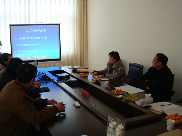 调研组到知识产权局进行调研,听取了知识产权局的我市知识产权战略的研究与制定专题,了解了我市专利技术孵化器建设情况和专利信息查询系统的研发设计内容。