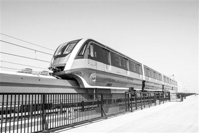 我国自主研制的首列永磁跨座式单轨列车5月19日在青岛下线。这种列车是国内首次采用永磁牵引技术制造,节能10%以上,达到国际领先水平,标志着我国在跨座式单轨车辆技术领域取得重要新突破。车辆的最高运行时速为80公里,整车使用寿命长达30年。图为永磁跨座式单轨列车。新华社发