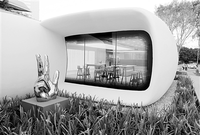 全球首座使用3D打印技术建造的办公室近日在阿联酋迪拜国际金融中心落成,该办公室的主体部分由盈创建筑科技(上海)有限公司3D打印完成。这座单层建筑楼板面积为250平方米,建筑材料为一种特殊的水泥混合物。所有“零部件”由一台6米高、36米长、12米宽的大型3D打印机耗时17天打印,然后由施工方仅用2天时间完成安装。目前这座建筑被用作迪拜未来基金会的临时办公室。新华社发(田维摄)