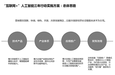 有业内专家表示,人工智能属于新经济、新模式、新产品和新业态,促进“互联网+人工智能”,一方面要把握好人工智能的定位,虽然其可以作为独立的产业,但是异军突起是不可能的,需要与传统产业和社会经济以及生活方式相结合,以提高服务效率来获得回报。