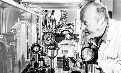 桑迪亚国家实验室物理学家约翰·波特在桑迪亚的Z-射束激光装置上调节一个超快多帧数字X射线摄像机——目前世界最快的摄像机。