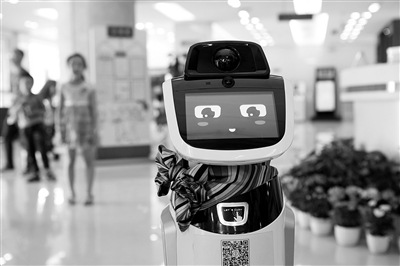 这是7月7日在中国农业银行四川省内江市分行营业大厅内拍摄的智能机器人“甜甜”。