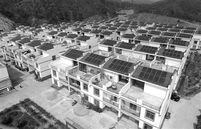 江西省赣州市于都县是当年中央红军长征集结出发地。近年来,该县积极探索光伏产业扶贫新路,通过政企双向补助、银行发放“光伏贷”、公司农户联营等方式,利用搬迁移民住户的房屋坡顶资源,发展光伏发电产业,让屋顶生“金”,帮助贫困户脱贫致富。新华社记者 万象摄