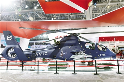 | 10月31日,中航工业Z-19E武装直升机亮相珠海航展展馆。新华社记者 梁旭摄 |