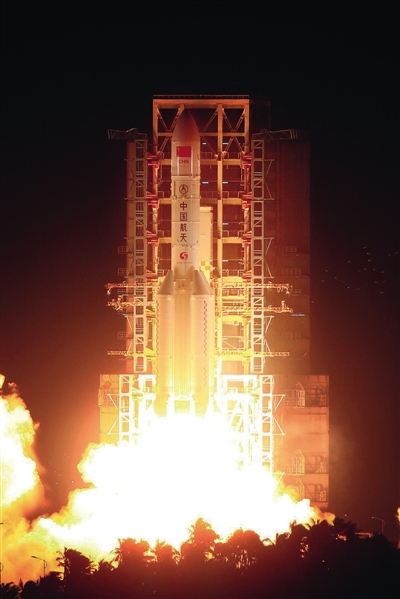 | 11月3日20时43分,我国首枚大型运载火箭长征五号在中国文昌航天发射场点火升空。 新华社记者 李刚摄 |