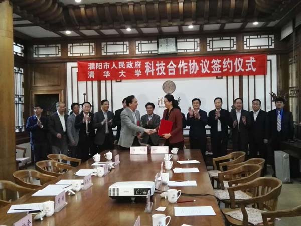 何雄表示,当前濮阳正处在转型升级、爬坡过坎、蓄势赶超的关键时期,迫切需要优秀人才、先进技术和高端项目的支撑。此次签约是濮阳市实施创新驱动发展战略进程中的一件大事,开启了濮阳市与高等院校合作的新篇章。清华大学是享誉海内外的著名高等学府,是国家高层次人才培养的主要基地;也是科技成果孵化的摇篮,多项重大科研成果、发明创造在这里诞生,为促进国家现代化建设和地方经济社会发展提供了强大的智力支撑。濮阳市与清华大学具有坚实的合作基础和很强的契合点、互补性,加强与清华大学的科技合作,是濮阳推进创新发展、转型发展、赶超发展的战略选择,必将有利于清华大学优秀科研成果加速转化为先进生产力、助推地方经济社会发展,必将有利于濮阳提高创新能力、加快转型步伐,必将推动双方合作向更广领域、更高层次发展。希望清华大学充分发挥教育、科研、人才等优势,积极融入濮阳发展进程,在科技研发、创新平台建设、科技成果转化等关键领域与濮阳加强合作;希望清华大学有更多的高层次人才到濮阳工作和实践,有更多的科技成果在濮阳转化为现实生产力。我们将以此次签约为起点,全力以赴为双方合作打造良好平台,提供优质服务,营造一流环境,共同谱写携手并进、互利共赢的时代华章。