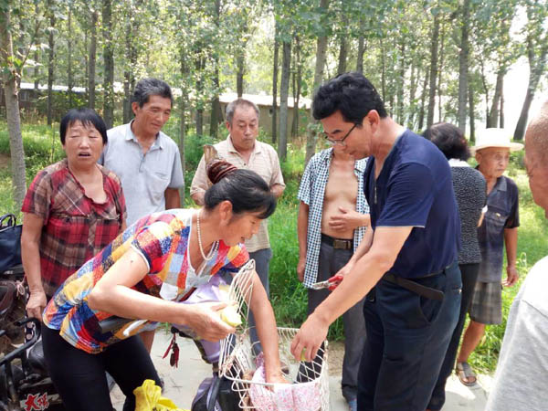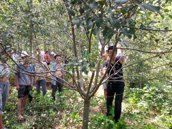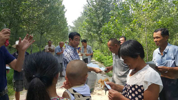 8 月4日 ,市科技局纪检书记王华,带领科技服务队和科技专家到我局扶贫村----范县陆集乡前张赵村,对精准扶贫工作进行现场指导,并开展科技服务工作。聘请的市林科院专家教授级高工张兆欣,围绕苹果树夏秋季管理技术,拉枝、修剪、病虫害防治、水肥管理等进行了详细讲解,回答了果农提出的有关问题,现场进行了修剪示范。市科技服务中心科技服务队发放技术资料、科技明白纸等200余份。最后,王华书记希望广大果农按照专家讲解的技术要点,加强管理,在今后的生产中如遇到问题,可随时向科技局反馈,我们将尽力为大家搞好科技服务,使大家尽快脱贫致富。