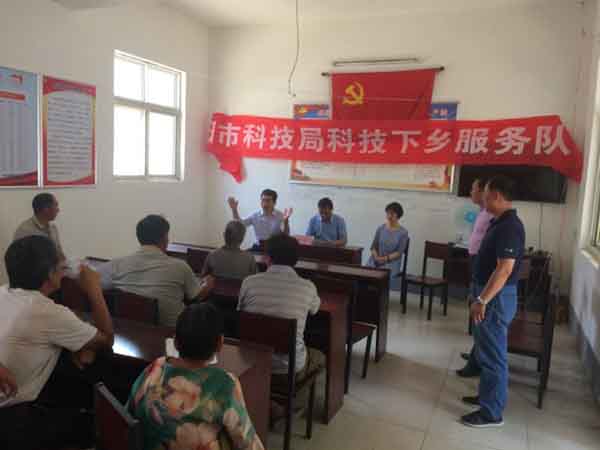 2018年6月20日,市科技局组织科技下乡服务队和科技专家到我局扶贫村——范县陆集乡前张赵村,开展了科技培训和科技下乡服务活动。在举办的果树种植技术培训班上,我局聘请的市林科院果树专家、教授级高工张兆欣,以苹果树优质丰产关键技术进行了详细讲解,回答了农民朋友提出的种植技术难题。在举办的养殖技术培训班上,我局聘请的市农业畜牧局兽医专家郭廷军围绕母猪、仔猪、育肥猪等养殖技术、疾病防治技术等进行了详细讲解,回答了养殖户提出的有关问题。培训班结束后,果树专家张兆欣、兽医专家郭廷军深入到种植、养殖现场,进行了现场指导。这次培训班共有60余名农民朋友参加了培训,发放《预防苹果日灼病》、《苹果夏季喷药有“四忌”》等各种明白纸500余份,《养殖技术及窍门》、《菜田使用农药基本知识》、《无公害蔬菜栽培技术手册》、《林果标准化栽培技术》等四种农村适用技术小册子300余册,科普知识扑克牌100副,发放科技服务二维码手提袋50个,受到农民朋友的热烈欢迎。