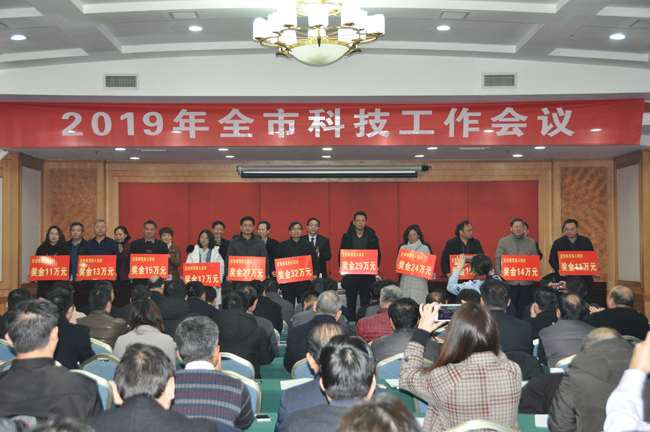 2月20日上午,我市召开2019年全市科技工作会议。市政府副市长孙永振出席会议并讲话。会议深入贯彻习近平新时代中国特色社会主义思想和党的十九大及十九届二中、三中全会精神,认真落实全省科技工作会议、市委七届九次全会精神,总结2018年工作,安排部署2019年重点工作任务,提出今后一个时期工作思路,并对去年获得省奖励资助的企业进行了通报表彰。会议由濮阳市政府办公室副调研员王改印主持。