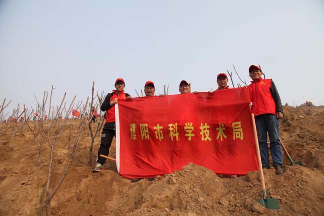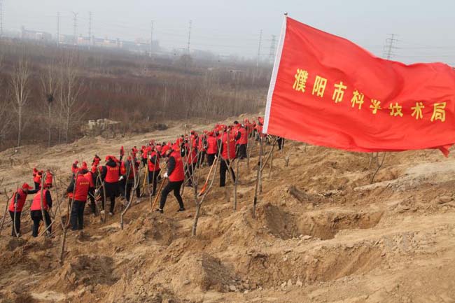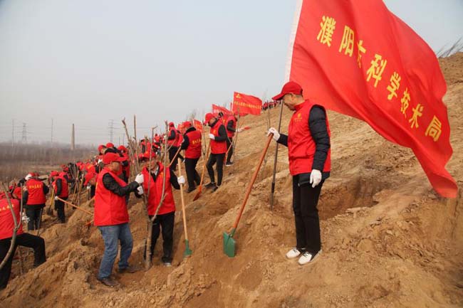 2月28日,由市科技局韩占府副局长带队一行6人,赴濮北新区龙山开展义务植树活动,以实际行动践行社会主义核心价值观。时值初春,阳光明媚,队员统一着小红帽、红马甲志愿服务装,现场热火朝天。下苗、填土、踩实、培土,有条不紊,共种植白蜡树、松树等优质苗木60棵,为濮阳龙山添绿添彩!