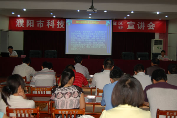 市科技局计财科科长熊延铭,高新科科长刘永明,市地税局所得税科科长姚建涛,市知识产权局协调管理科科长温九真,就近年来国家和省、市出台的科技投入政策、税收激励、引进消化吸收再创新政策、知识产权创造和保护、金融等扶持企业自主创新的政策进行了宣讲,并对企业在自主创新方面遇到的问题进行了详细、有针对性的解答。这次宣讲会发放《濮阳市科技政策进产业集聚区进企业法律法规和政策文件汇编》100余本,知识产权宣传手册100余套。