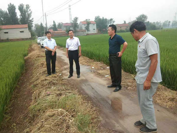 8 月 21 日 上午,市科技局副调研员刘广峰带领有关科室负责人一行2人到前张赵村调研脱贫工作。座谈了解了贫困户情况,察看了建档资料;听取了实施省级扶贫项目准备工作情况汇报,刘广峰对以实施项目为抓手,进一步搞好脱贫,落实惠民政策提出了指导意见。驻村第一书记刘培泽、范县工信科技局副局长孙圣国、村支村赵圣国陪同察看了省级扶贫项目实施现场。