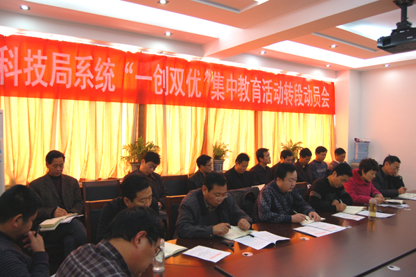 动员会上,局党组书记、局长吴社法同志作了动员讲话,总结回顾了我局“一创双优”活动第一阶段的工作情况,由于党组重视,部署周密,组织得力,方法灵活,坚持边学、边查、边改、边干,层层推进,步步落实,完成了“规定动作”,达到了“思想观念有明显转变、干部作风有明显转变、精神面貌有明显转变”的目标,圆满完成了学习动员、提高认识阶段的各项工作任务,取得了较好效果。我局教育活动自开展以来,共编印《濮阳市科学技术局“一创双优”集中教育活动简报》15期,创新地开展了“七学七个一活动”,教育活动开展情况信息被市“一创双优”活动简报登载2篇, 3篇理论文章被《濮阳日报》刊登,教育活动开展情况先后被濮阳电视台采编播出3次,在濮阳广播电台做了1期 “阳光热线”专题节目,尤其是坚持边学、边查、边改、边干,在为基层服务上下功夫,积极开展了面向社会公开征集重大科技项目建议、深入企业调研、送科技政策进企业进产业聚集区、科技下乡等办实事办好事活动,深受群众好评,使教育活动“早见成效、多见成效、快见成效”。