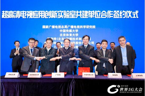 11月22日上午,在世界5G大会“5G+超高清视频高峰论坛”现场,国家广播电视总局广播电视科学研究院、北京市广播电视局作为牵头单位,分别与九家单位签署“超高清电视应用创新实验室”共建协议。