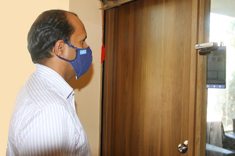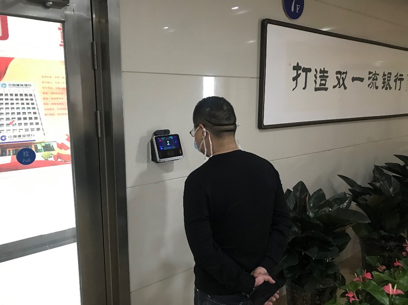 复工伊始,在位于河南某建设银行楼宇进门处,前来上班的员工陆续“刷眼”进入,即使戴着口罩,当脸部对准虹膜识别设备屏幕时,停顿一两秒钟左右,设备就发出了“识别通过,体温正常”的提示。即便是在有口罩遮挡的情况下,设备仍能精准完成身份认证,同时又迅速检测出来员工的体温数值,“入口通行验证+体温健康检测”的双重保障,解决了楼宇管理的燃眉之急。