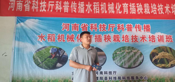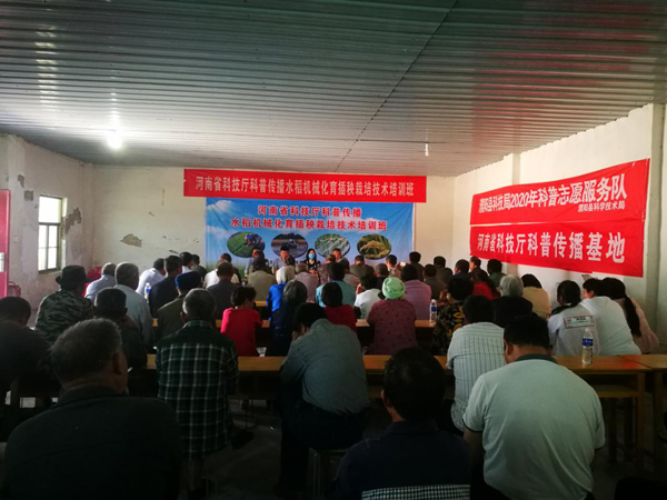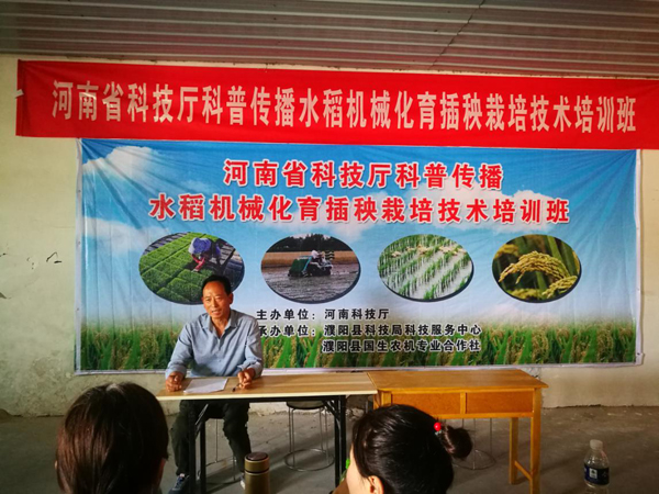 5月19日,河南省科普传播基地依托单位濮阳县科技服务中心在郎中乡濮阳县国升农机专业合作社举办了“河南省科技厅科普传播水稻机械化育插秧栽培技术培训班”。培训班由县派科技特派员梁国生讲授水稻机械化育插秧栽培技术,技术专家郭敬可讲授水稻病虫害防治。到场参加培训的贫困户农民及水稻种植户共计110名,县科技局主要负责人及相关业务股室人员参加。