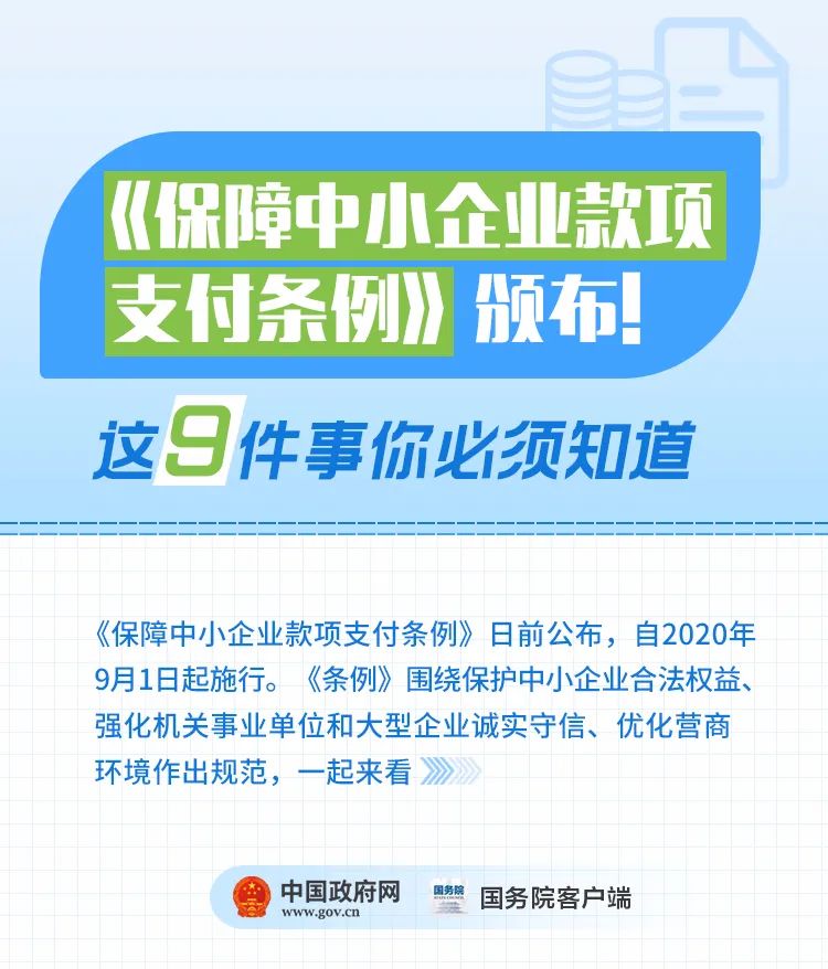 日前《保障中小企业款项支付条例》公布,自2020年9月1日起施行。如何保障中小企业款项支付?一起来看——