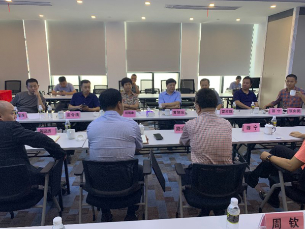 市生物基专班首席服务员、市科技局党组书记雷灯照陪同市生物基专班市级领导,市委常委、统战部长黄旭东与中国生物降解产业技术创新战略联盟秘书长路连峰、海南禁塑产学研促进会秘书长陈宁、长儒国策(海南)供应链管理公司董事长黄延辉、亿科优总经理余新林等进行洽谈