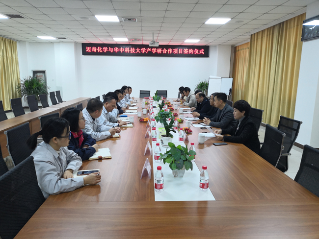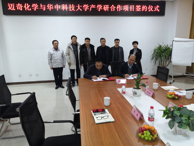 ,我市迈奇化学股份有限公司(以下简称“迈奇化学”)与华中科技大学举行产学研项目签约仪式。双方共签订了3项技术开发合作协议,建立了产学研合作关系,将在锂电池材料生产应用方面开展深层次的开发合作。市科技局总工程师刘永明、科技人才与成果转化科科长孟令涛、华中科技大学材料学院院长黄云辉、高级工程师陈建生、迈奇化学总经理肖强、党支部书记陈培尧等出席了签约仪式。签约仪式由经开区经济发展局副局长关永洁主持。