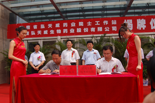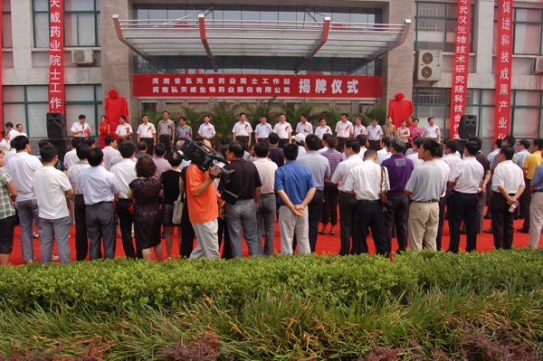 6月19日,我市首家省级院士工作站——濮阳泓天威药业院士工作站挂牌成立。中国科学院院士邓子新,武汉大学药学院党委书记刘兴国,濮阳市代市长盛国民,省科技厅副厅长李中哲,省畜牧局副局长王承启等出席揭牌仪式。揭牌仪式由市政府副市长徐兰峰主持。盛国民、李中哲为工作站揭牌。市科技局吴社法局长与武汉生物技术研究院长邓子新院士分别代表双方签定了科技合作战略协议。