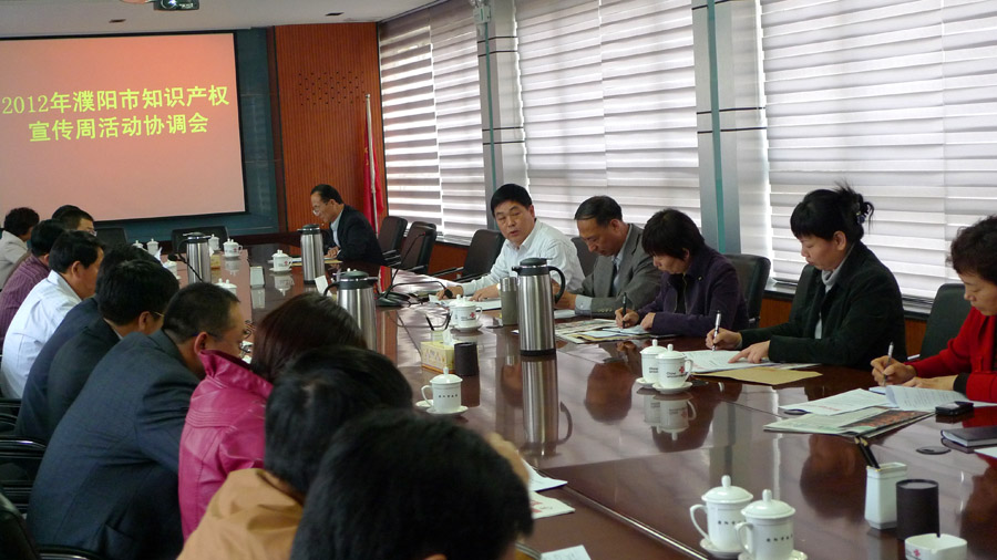 4 17 ,市政府召开2012年濮阳市知识产权宣传周活动协调会,安排部署2012年全市知识产权宣传周活动。